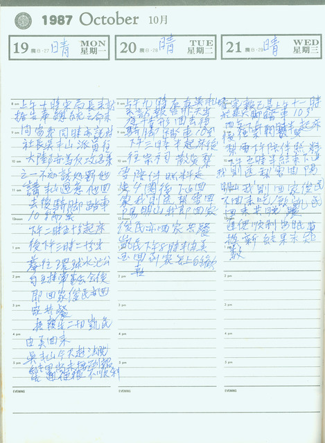 吳三連1987年(民國76年)10月19日日記