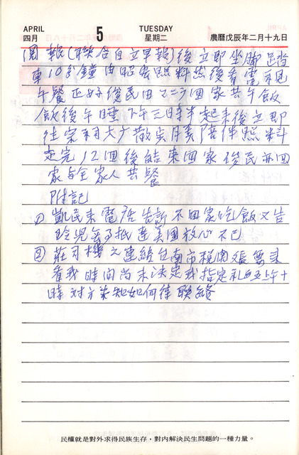 吳三連1988年(民國77年)4月5日日記