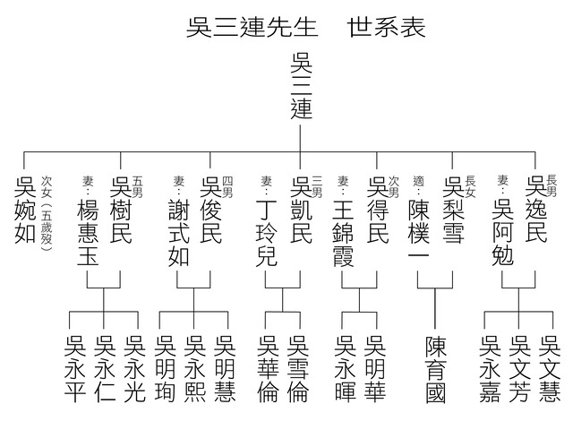 吳三連1899年(明治34年)至1988年(民國77年)--家系表