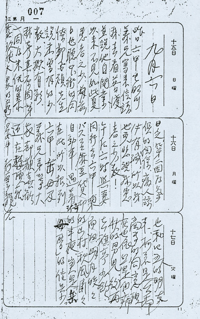 此係吳新榮寫於1933年9月6日日記,記述昨日(9月5日)收到妻舅毛昭川來信邀約回六甲看普渡;聽聞昭川義兄和鄭國湞亦有就診患者數減少的情況,究其原因可能與米價下跌、氣候因素導致民眾經濟匱乏有關;當日下午與妻毛雪搭乘巴士到麻豆租自動車(汽車)回六甲,途中遇到至友黃奇珍,夜晚山村明月皎皎,秋風蕭蕭。   日記中提及台灣米價下跌的情況,主要是受到1933年台灣總督府頒布的米縠政策的影響所致,而日治時期台灣為傳統農業社會,多數台灣人多以務農為生,故亦受此波及。
