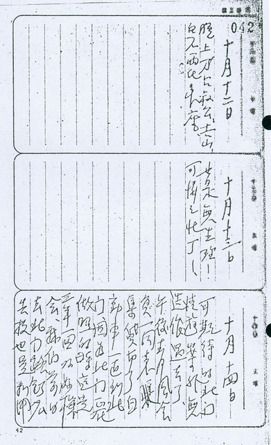 此係吳新榮寫於1933年10月14日日記,青風會成員租車同遊北門,時逢作醮;又到北門庄役場參訪,晚上,包車返回佳里,途中至營頂時,因車子故障,所以到莊珍家稍坐。   日記中提到的青風會,是吳新榮與黃清澤、郭水潭、徐清吉、葉向榮等藝文同好於1933年10月7日共同組成的團體,名為「佳里青風會」。在1933年10月14日日記中,記述起草青風會會則,其中一條即「旅行、遠足、設置文案等」,自青風會成立後,在日記中便常見會員聚會的活動,加上青風會同仁本就是長年交往的友人,組成同好團體後,情感更為緊密,這一天同仁們一起出遊至北門,參觀作醮,也參訪北門庄役場。
