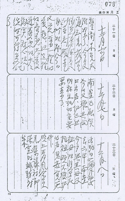 此係吳新榮寫於1933年12月8日日記,兒子南星明天滿月,當晚,吳新榮妻子毛雪和母親張實,帶南星回將軍庄老家拜祖先。晚上和青風會會員商討有關邱添寶誹謗一事的方法。   吳新榮夫婦的第一個孩子南星於1933年11月9日出生,從吳新榮日記的文字中可以感受到他即初為人父的喜悅。南星出生後,吳新榮與長輩王大俊、王炳南等人一起為南星命名,長者認為此名意謂「南極星輝」很好,吳新榮則認為「南方的星光可照世界的和平」亦好(1933年11月13日日記)。家族親友們對這第一個孩子的出生,皆極為歡喜,吳新榮亦常在日記中描寫工作忙碌、煩心之餘,能見這孩子的微笑、逗逗孩子,便是很大的安慰。這一日的日記寫道,明天(12月9日)是南星的滿月,12月8日晚上,妻子毛雪和母親張實先帶南星回將軍庄老家拜祖先。