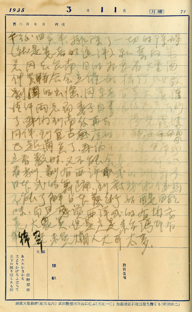 西曆日期:1935/3/11/他類日期:昭和10年3月11日