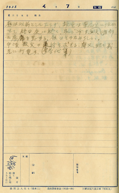 西曆日期:1935/4/7/他類日期:昭和10年4月7日