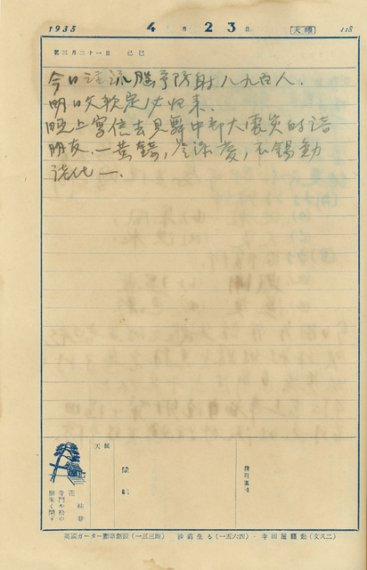 西曆日期:1935/4/23/他類日期:昭和10年4月23日