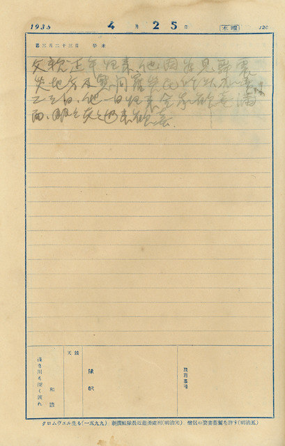 西曆日期:1935/4/25/他類日期:昭和10年4月25日