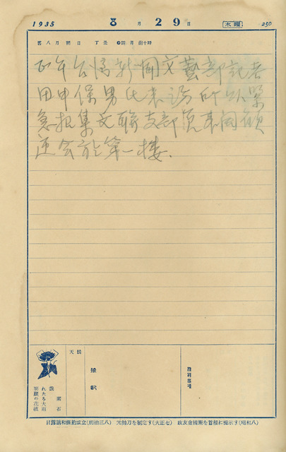 西曆日期:1935/8/29/他類日期:昭和10年8月29日