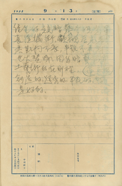 西曆日期:1935/9/13/他類日期:昭和10年9月13日