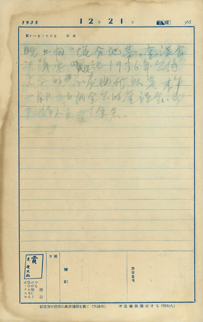 西曆日期:1935/12/21/他類日期:昭和10年12月21日