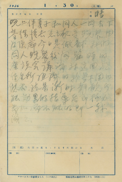 西曆日期:1936/1/30/他類日期:昭和11年1月30日