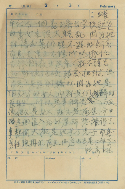 此為吳新榮記載於1936年2月3日日記,一名學校女職員帶著女兒到吳新榮醫院引起糾紛,吳新榮則聯絡黃百祿處理,而糾紛起因可能為喪子。   本日吳新榮醫院裡,一對母女引起糾紛,其原因可能是要求醫藥費問題,而其丈夫則放任不管妻子。吳新榮馬上聯絡黃百祿,送當時的診斷證明,來保護自己與醫院的名聲,吳新榮認為這位女士是想要把事情鬧大,而自己是想要息事寧人,而今日之事已平安解決,如果吳新榮不是本院醫師,而女職員不是女性,這件事情不會這麼容易結束,最後得知此騷動是因女職員可能在生產過程中失去孩子,想把責任歸咎於醫療疏失,要求醫院賠償。從這段日記可以看出,雖然在當時台灣醫療技術或是生育觀念改善不少,但女性面臨生育過程中的難產,還是有相當大的風險存在。