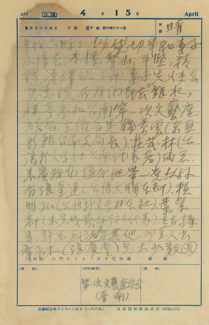 吳新榮1936年4月15日記