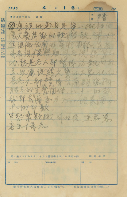 西曆日期:1936/4/15/他類日期:昭和11年4月15日