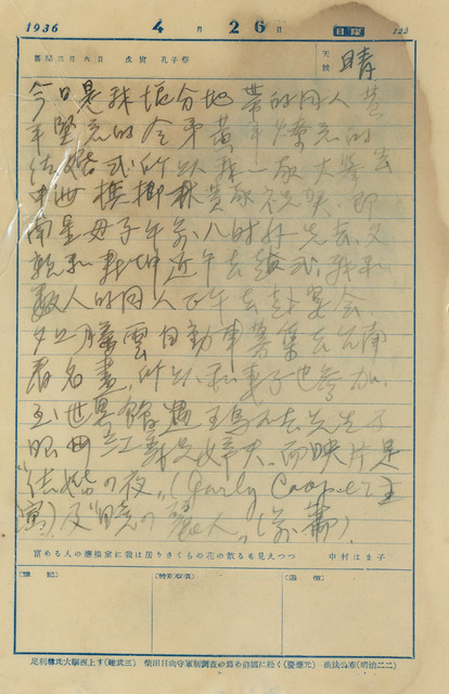 西曆日期:1936/4/26/他類日期:昭和11年4月26日