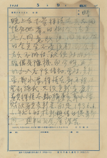 西曆日期:1936/5/9/他類日期:昭和11年5月9日
