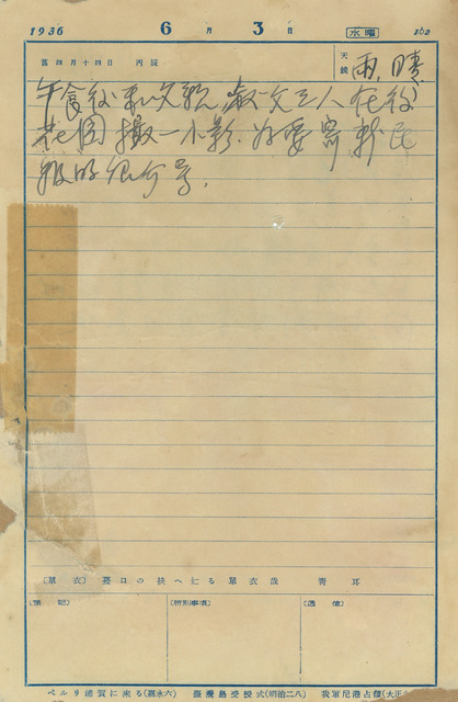 西曆日期:1936/6/3/他類日期:昭和11年6月3日