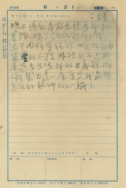 西曆日期:1936/6/21/他類日期:昭和11年6月21日