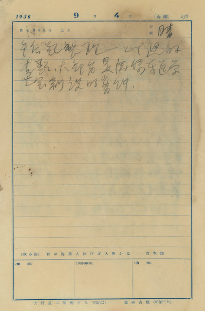 西曆日期:1936/9/4/他類日期:昭和11年9月4日