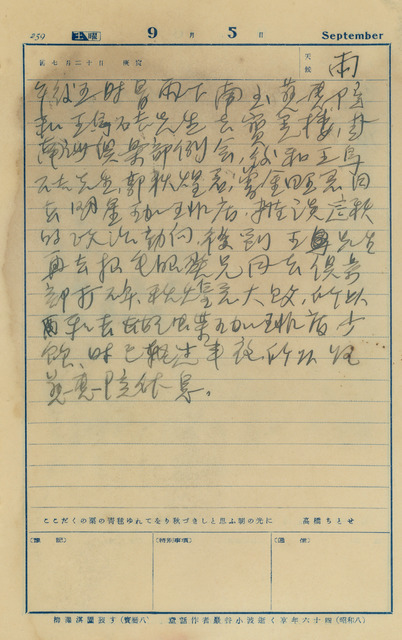 西曆日期:1936/9/5/他類日期:昭和11年9月5日
