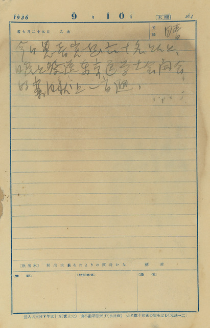 西曆日期:1936/9/10/他類日期:昭和11年9月10日