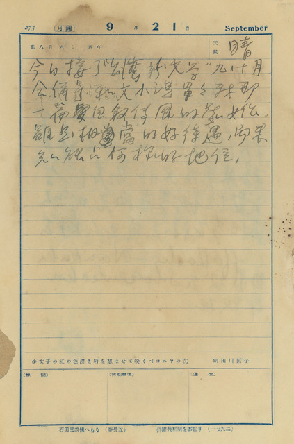 西曆日期:1936/9/21/他類日期:昭和11年9月21日