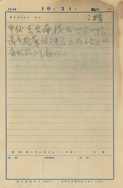 西曆日期:1936/10/31/他類日期:昭和11年10月31日