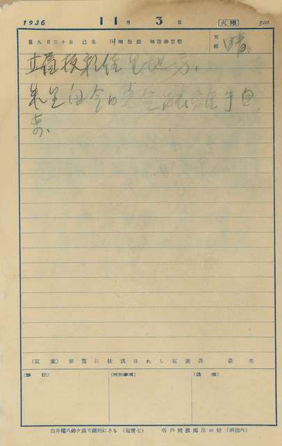西曆日期:1936/11/3/他類日期:昭和11年11月3日