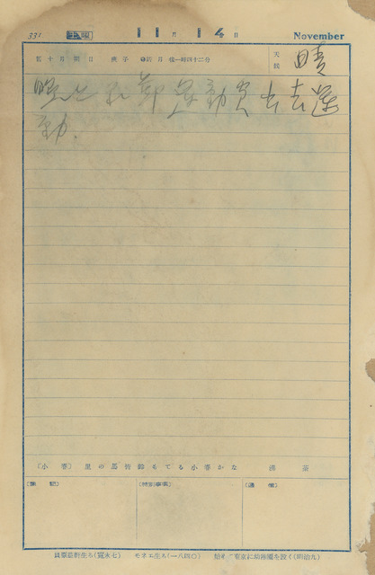 西曆日期:1936/11/14/他類日期:昭和11年11月14日
