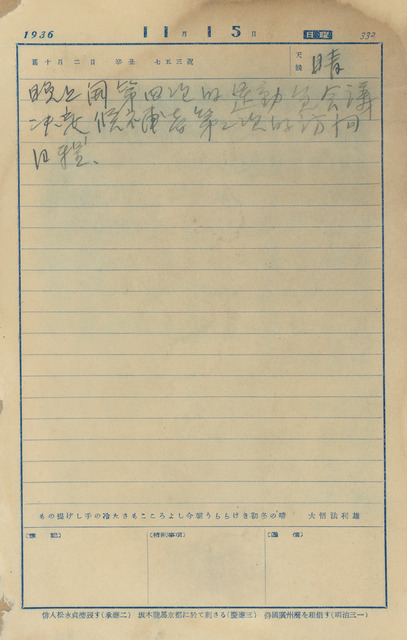 西曆日期:1936/11/15/他類日期:昭和11年11月15日