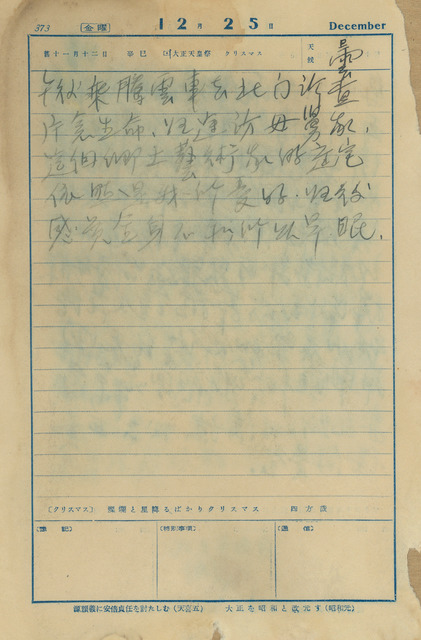 西曆日期:1936/12/25/他類日期:昭和11年12月25日