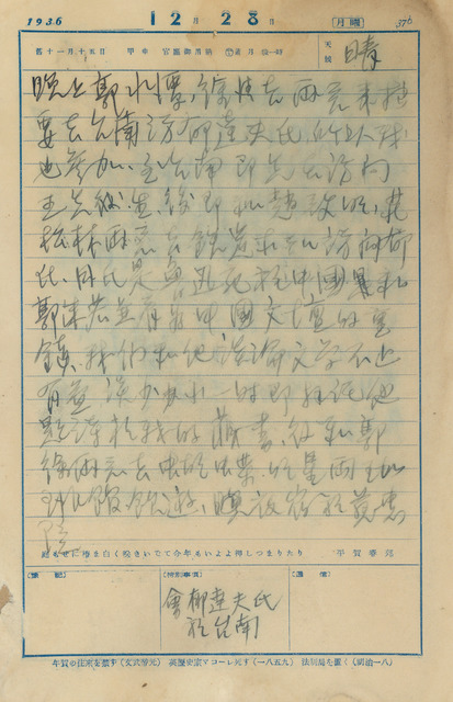 西曆日期:1936/12/28/他類日期:昭和11年12月28日