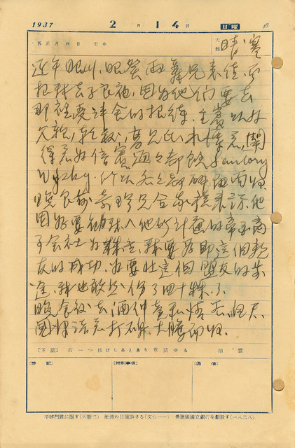 吳新榮1937年2月14日記