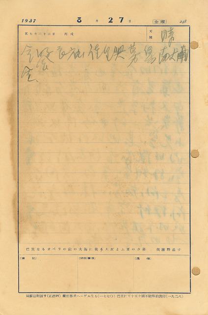 西曆日期:1937/8/27/他類日期:昭和12年8月27日
