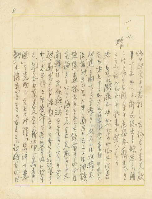 西曆日期:1938/1/7/他類日期:昭和13年1月7日