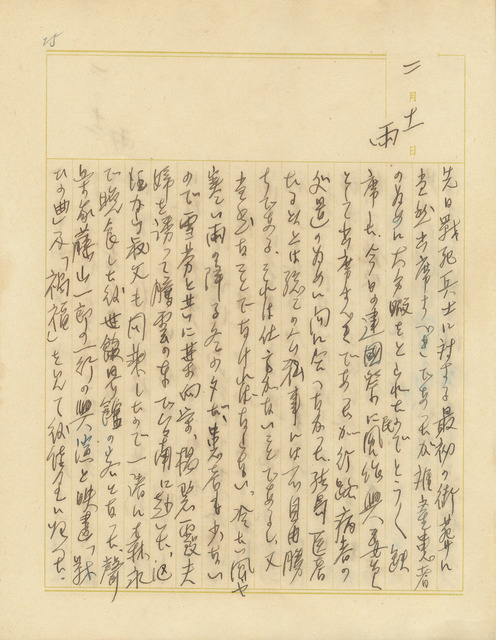 此為吳新榮寫於1938年2月11日日記,因診治病患,無法出席陣亡士兵街葬式、建國祭。傍晚,偕同妻子、葉向榮夫婦用餐後,前往戲院看電影。   世界館落成於1930年,由澤田三郎所領導的「吾等の一團」經營,為臺南市首座歐式風格的電影院,且也是全臺第一落成之初便設有座椅的電影院,此外,世界館內冷氣、映畫播放等先進器材,亦使世界館與其他影院相比,更具競爭與發展力,二戰後世界館更名為世界戲院並由國民政府接管,如今,世界館不復存在,現址為湯姆熊遊樂世界   又,日記中提及的建國祭又稱為紀元節,日本天皇開國至今已2000餘年,每年2月11都會舉辦盛大慶典的建國祭慶祝天皇創業,以及感念其建國之精神,而2月11日的祭祀日期則是根據《古事紀》、《日本書紀》神武天皇繼位之日做為推算;日本殖民統治臺灣時期,引入時間觀念以及相關節慶;臺灣於1914年開始,每年2月11日皆會在神社舉辦紀元祭,到了1926年,又有日本在鄉軍人以及壯丁團舉辦之建國祭,當時臺灣亦同日本舉辦之。