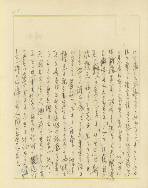 此為吳新榮寫於1938年3月5日日記,下午偕同妻子赴世界館觀賞電影,電影後,與友人赴天國咖啡廳吃晚飯。   我們可以從吳新榮日記中得知,天國咖啡廳女服務生與吳新榮及其友人互動熱絡,「瑠美」是吳新榮友人黃百祿的二夫人;「雪子」為陳清鐘逝世哭泣;「信子」為李君尺永久的愛人;「幸子」由郭維鐘影響前半生;「山茶花」讓謝振聲做了天國夢,為此,謝振聲給吳新榮信中還寫道「攜手訪臺南,分開各人宿。我結天國夢,君夢我不知。」仿佛仍沉浸在天國美夢中。   又,吳新榮在日記結尾表現出對時代的無力感,頗有逃避現實的意味,中日戰爭期間,殖民政府於臺灣推行皇民化政策,手段漸趨強硬,對異議容忍度顯著降低,使知識份子將注意力轉而投入社會不同層面,如吳新榮平時投入工作,休閒之餘與友人打麻將、赴咖啡廳、酒館。