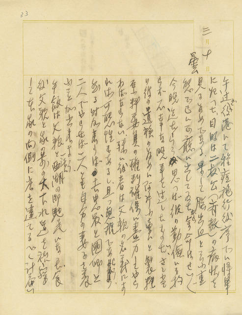 此為吳新榮寫於1938年3月10日日記,午後其替二叔公診治,認為時日無多,因二叔公一生勤儉度日,吳新榮想於二叔公身後替其家族爭取鴉片零售權以及製糖原料委員一職;其計劃於老家對面興建店面,期許在家鄉貢獻文化性建設。   日記中提及鴉片零售權屬於專賣特權之一,日本殖民初期鑒於臺灣濫吸鴉片成風,以「臺灣鴉片令」限制壓片買賣。1901年後,臺灣總督府專賣局成為販賣鴉片大盤商往下層分別為地方廳、零售商。日記中提及之零售商屬專賣局管轄,透過專賣局制定價位上限讓商人彼此削價競標,得標者獲得零售資格。   又,製糖原料委員雖非正式編製員工,卻因任職糖廠,所以在地方上有一定影響力,其工作負責協助鼓勵民眾種蔗、收購甘蔗原料,承辦原料採收與搬運等,不少仕紳透過此途徑,與日本上司交好,以求累積人脈、晉昇順利。  從日記中體現吳新榮為其族人考量工作與生計的一面,也可看出鴉片零售與製糖原料委員需要一定競爭與人脈才能勝任。