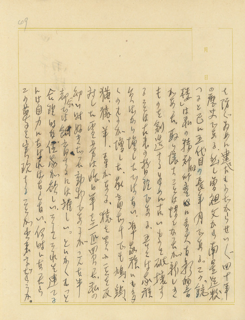 此為吳新榮寫於1938年4月19日日記,其敘述家庭趣事及將軍老家住宅整修事宜;對於銃樓拆除一事心中甚感惋惜,但建築物已成危樓且創造新物(整修或重建)時舊物必須破壞,然基於此兩種因素,著手施行整建工作。   吳新榮表達兒女使自己人生更為豐富精彩,吳新榮一生中,家庭是不可或缺的一環,某種程度上提供心靈慰藉,礙於時代背景的限制,他將累世抱負的滿腔熱血寄託於行醫,期望以醫師收入栽培弟妹、養育妻小,也憑醫術治癒病患。此外,麻將、飲酒也是吳新榮生活重心之一,閒暇時光偕同友人打麻將、歡飲至深夜,回過頭看,這些在吳新榮心中都不若家人重要,數則日記內容對妻子、孩子的愛及關心溢於文字間。   又,銃樓拆除一事,將軍宅第為父親吳萱草乃至吳新榮兒時所居住之處,1938年3月初以來,吳新榮便有意規劃將軍宅第重新整修一事,而擬訂整修計畫,吳新榮時常將建物設計規劃、預算、修築方式詳列於日記中,並親自設計家徽;動工期間更時常往返將軍前去查看工程進度,對此工程可說是十分重視。