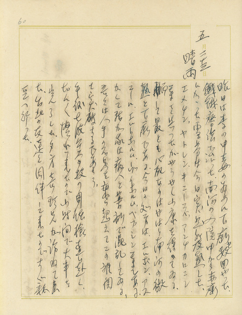 此為吳新榮寫於1938年5月23日日記,近兩日,其與妻子分別生病、次子吳南河微熱和下痢,妻子在自己開處方下逐漸恢復;下午前往七股公學校替學生身體檢查。   日記中,在次子吳南河生病的過程中,吳新榮與妻子也紛紛生病,故其提到家中情況十分混亂,好在妻子在自己開藥後病情逐漸恢復,南河住院後病情開始好轉,不過微熱、下痢仍未痊癒仍是吳新榮最擔心的一件事。   又,公學校身體調查,吳新榮1936年日記中曾提及擔任七股公學校、後港公學校、土城子公學校校醫。