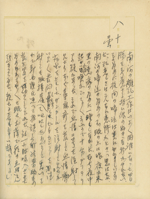 西曆日期:1938/8/10/他類日期:昭和13年8月10日