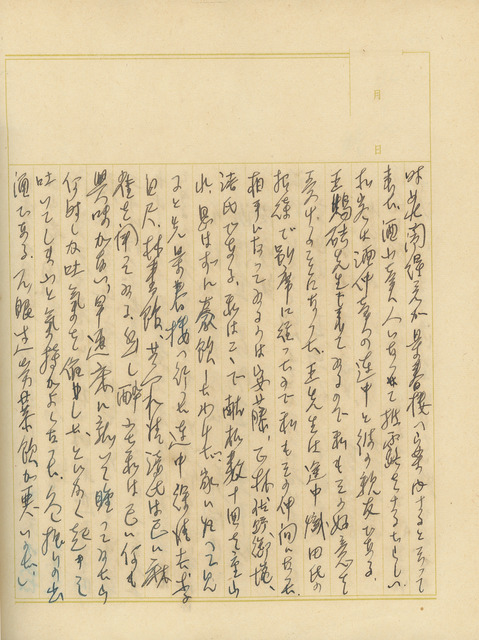 此為吳新榮寫於1938年9月17日日記,看診之餘,順便將家中收成的檸檬分送親朋好友;返回將軍老家察看建築工事;晚上出席織田氏招待酒席。   日記中,吳新榮表示因睡眠不足、工作量龐大、暴飲暴食把身體弄壞,縱使如此,晚上仍赴友人邀約,前往樂春樓,酒席結束後,已有另一批友人在吳新榮家打麻將,不過這次他選擇倒頭就睡,不若往常加入麻將戰局,若從9月15日日記中,可以看到其生病時依然打麻將、看診,在生活忙碌之餘,休閒行程近乎滿檔,生病也積極善用時間的精神。   又,日記中提及的織田氏為織田久盛,為建築學專家,其於1932年開始擔任北門州郡役所庶務課一職,1938年為台南州內物部土木課技手;1943獲總督府營繕課長推薦,進入台南高等工業學校擔任教授;當時因颱風影響下,赤崁樓因而損壞,織田久盛等建築學專家也於1943至1944年,投入赤嵌樓的整修計畫。