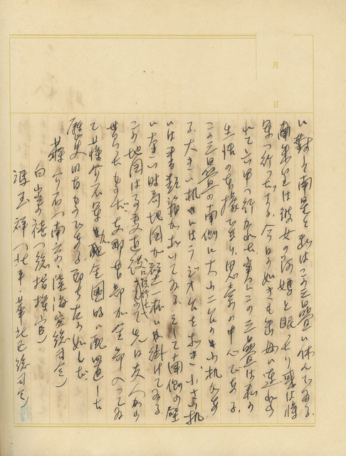 此為吳新榮寫於1938年11月18日日記,因來診病患出奇少,除了紀錄如何消磨時光外,也連帶提及房間格局、擺設;透過房中軍隊佈局之地圖進而提到選擇張貼這張地圖的原因;吳新榮提及子女命名之考量。   日記中吳新榮提到房間所張貼之中國地圖,該地圖為事變爆發後(約1937)所刊印,至今(1938)已有重大變動,導致時局已與地圖上所呈現截然不同,自中日戰爭爆發到該年11月,中國已經損失大半領土。尤自武漢會戰(1938.6-1938.10)後,國府軍隊大舉撤至重慶,局勢看似十分不利,但吳新榮仍在日記中提到「整個情勢總有一天會從這張地圖消失而去……江、湖、都市、百姓是永久存在的吧」,文中隻字未提勝負相關資訊,僅提到人事物永恆存在的真理,據此也表示實際生活亦是如此。