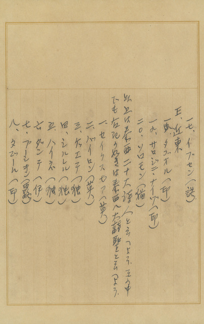 徐清吉/鄭國津/林朝會/稻富/永川/陳漢氏/生田春月/莎士比亞/密爾頓/拜倫/丁尼生/惠特曼/朗費羅/雨果/但丁/Gabriele D´Annvnzio/歌德/席勒/海涅/尼采/普希金/屠格涅夫/安徒生/易卜生/泰格爾/莎洛吉尼/索羅門