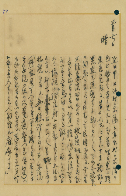本篇為吳新榮寫於1939年3月06日日記,吳新榮近幾日因流行性腦脊髓膜炎而四處奔波外診,並認為這是作為醫生的本分。 日記中提及吳新榮參加全島性的防空演習,而日治時期的防空演習按照規模可分為三種,分別是是由總督府舉辦、由州廳舉辦,第三種則由郡市街庄舉行防空訓練,由此可知,吳新榮今日參加的是由總督府舉辦的防空演習。救護班則是防衛團為了日本進入戰爭時期所成立的轄下組織,主要目的為協助戰時民間防衛機制以及訓練民眾挑水、消防、燈火管制、交通、避難等相關事宜,平日也須負責巡邏鄉里、清理水溝等公共服務事務,也會成立救護班進行規模性的演習。戰爭初期許多台灣民眾對於中國戰場的日軍,常常透過行動表示支持,吳新榮即被任命為防衛團團員,擔任後方指導者,所以有義務前往參與演習。台南愛護寮,專門收容乞丐與遊民,後來併入私立台南救濟院,現為新都養護所。根據吳新榮日記,可發現吳新榮時常在日記中抒發對於社會風氣的感慨,例如當時處於流行病肆虐的時期,而吳新榮則聯想到了戰亂與惡疫的徵兆。