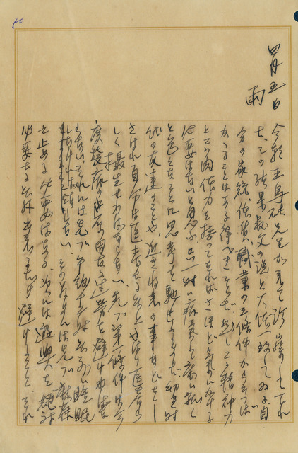 本篇為吳新榮寫於1939年4月05日日記,吳新榮認為自己的身體算勇健沒想到此刻正在為身體微恙煩惱,甚至歸納出這次生病的原因與建議,並為自己人生給予鼓勵。 根據日記所述,可以看到吳新榮時常為平常煩惱的事情作分析,如在此篇,吳新榮提到這次生病是因為過勞,所以為了自己的身體著想,甚至歸納出幾點的意見或目標,最常出現要改善的即是麻將。麻將對於吳新榮來說不只是消遣活動,更是重要的社交手段之一,雖然常常與朋友聚會打麻將甚至熬夜晚歸而引起妻子的不滿,但從日記中可以發現吳新榮對麻將難分難捨。吳新榮平常也有閱讀習慣,且類型相當廣泛,更時常在日記中,抒發個人的情懷以及立下人生中應該面對的難題與目標,如此篇對於世俗雜物應該屏除,在心中充滿熱情並具備骨氣來實行正義行動。