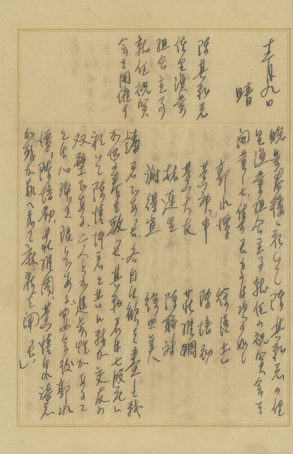 此為吳新榮寫於1939年12月9日日記,吳新榮等人為慶祝陳其和就任佳里漁業組合主事於樂春樓舉行祝賀會。   佳里漁業組合為青年派所參與選舉的一環,吳新榮曾將地方選務略做區分,除了政治性的保正、甲長、州、街庄協議會員外,亦有經濟性的漁業組合、信用組合等商工組織,在這些政治與經濟選舉的競爭上,吳新榮等青年派視為最大威脅便是既成派,何謂既成派?既成派相比起吳新榮的青年派較早存在的派系勢力,在議會中以時常以人數優勢保住自身利益的既成勢力,而其最為吳新榮看不慣為「結合金錢和權力,缺乏進步和正義心」,因此吳新榮等受現代思想影響的青年派想透過參選完成世代交替,一改先前既成派獨佔的情形,吳新榮先前也數度在日記中勉勵自己若青年派未來得勢,千萬不能走上既成派的後塵。   又,吳新榮與其青年派的友人除了透過參與地方上街庄協議員、市議員、州議員選舉外,亦參與各種組合(漁業、信用)職位的選舉,以期獲得地方上政治與經濟的權力,如吳新榮曾在12月16日日記中針對組合役員選舉進行規劃,並提到:「我既已得到政治上的勝利,其次經濟性的勝利志在必得」,說明了青年派正逐漸崛起,在地方事務上欲將既成派取而代之的期望。
