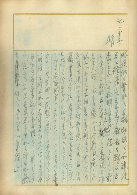此為吳新榮寫於1940年7月15日的日記。昨夜吳新榮與友人打麻將,導致今晨睡過頭。忽然吉田高等刑事帶人來查,要帶走吳新榮看過的書,吳新榮甚感惋惜。下午,在公會堂舉行佳里街第二次街協議會,會後眾人用津貼、車馬費到富士閣舉行慰勞會,因費用尚有餘再到第一樓、樂春樓續攤。 高等刑事是日治時期特有的警察種類,為專門統制政治活動、取締思想犯罪的刑事警察。1920年代,為了應對台日兩地逐漸高漲的社會運動,日本政府成立「高等警察課」,並接連頒布治安警察法、治安維持法,以此為基礎賦予警察職權,日本與台灣都出現了專門管制政治運動的「高等警察」、主管人民思想言行的「特高警察」,除此之外,台灣還有管制報紙及出版業的「出版警察」、管理非臺籍人士的「外事警察」。雖然台日兩地都有性質相近的高等警察和特高警察,但發展還是有所不同,像是日本於1935年即廢除高等警察,只留有特別高等警察,而台灣卻一直都有高等警察的職位,其機動性也高於特別高等警察。從日記文中警察把吳新榮的書帶走的描述可知,吳新榮的思想、他看過的書,都是要被審查的對象,可見當時警察對他的嚴密掌控。
