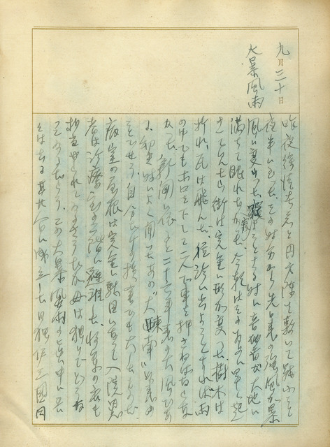 此為吳新榮於1940年9月30日撰寫的日記。前夜天氣突變,由強風轉為暴風雨,使吳新榮無法成眠。當日起後發現村里災害甚重,其經營的病室屋頂亦損壞,故吳新榮擔心起將軍老家的狀況。下午吳新榮出席佳里街防衛團西分團成立式,前來照顧毛雪待產的岳母則返回六甲配合國勢調查。後王烏硈來訪,談及佳里街公醫的職位將要空出,吳新榮以自己具經驗且有名望自薦擔任。日記亦提及前日成立的三國同盟,認為世界局勢將有如暴風雨般改變。而國勢調查將於次日舉行,吳新榮在調查中負責疾病調查。   上文提及之「國勢調查」,是日治時期政府為確實掌握臺灣人口狀況而實施的大規模統計調查。臺灣的首次調查舉行於1905年,稱為「臨時臺灣戶口調查」,同時也是東亞的首次科學性人口普查。在日治政府的主導下,調查每五年進行一次,並在1920年後始與日本本國同時舉辦,並正名為「國勢調查」,除常見的一般調查項目還包括:種族、是否為鴉片特許吸食者、纏足情況、本籍地、出生地、渡臺時間、常用語言、假名讀寫程度等,以把握具體的殖民地住民狀況。日記內提及的國勢調查為臺灣第七次舉行之人口普查,由於遭逢世界大戰,因而相關調查結果並未出版,待到1953年才由台灣省政府出版相關文獻。