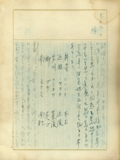 此為吳新榮於1940年12月9日撰寫的日記。當日傍晚,吳新榮原至臺南是為看電影,然因辦事而耽擱無法觀影。日記中寫及其想於《日本醫事新報》投稿關於創姓的隨筆,但擔心引發問題遂放棄一事,也記錄了其對於改姓名的想法供日後參考。   本日記中提及了皇民化運動中的改姓名運動。1940年(即是本日記當年),臺灣總督府正式公布改姓名辦法,從此開始了臺灣的改姓名運動。改姓名運動與皇民化運動的基本精神是高度配合的,意欲將臺灣人改造為「真正的日本人」,是以希望臺灣人在形式上和實質上都必須與日本人毫無差異,自然也必須要將漢姓名改為日本姓名。而同時間,同樣受統治於日本的朝鮮,改姓名運動也如火如荼地展開了。但臺灣與朝鮮的強迫改名不同,臺灣的改姓名運動則是以申請制,強迫意味較低。在當時的臺灣,若申請使用日本姓名通過,會得到好處,如:在戰時體制下獲得較多的配給。然而,雖然吳新榮已經對改換為日本姓名有所打算,而改換日本姓名亦有許多便利與益處,直至日本戰敗,吳新榮皆未申請使用日名。對吳新榮而言,姓名是表現民族性的象徵,也是個人與血緣、宗族、地緣的紐帶,是以雖然能夠接受改名,但仍未屈服於時局的脅迫。