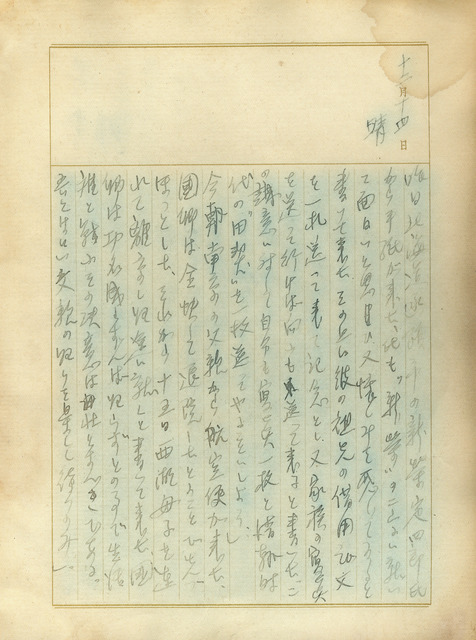 此為吳新榮於1940年12月14日撰寫的日記。日記前日吳新榮收得北海道函館新榮定四郎寄來的信函,其中包含其家族的舊文書作紀念品。吳新榮認為對方誠意之高,決定回寄一份清代田契及家族照片給對方紀念。當日則收到吳萱草自南京之來信,得知吳國卿已經出院,而吳萱草將帶西湖母子回到臺灣,至於吳國卿則決定要繼續於中國奮鬥。   1940年(即是本日記當年),臺灣總督府正式公布改姓名辦法,從此開始了臺灣的改姓名運動。改姓名運動與皇民化運動的基本精神是高度配合的,意欲將臺灣人改造為「真正的日本人」,是以希望臺灣人在形式上和實質上都必須與日本人毫無差異,自然也必須要將漢姓名改為日本姓名。吳新榮因為此政策的發表,便有草擬自己家族換日本名後要使用的姓與名,其中有一作法是將其名字「新榮」作為姓來使用,在翻看日本醫籍時也因而發現北海道有「新榮」一姓,進而與新榮定四郎有了書信交流。然而,雖然吳新榮已經對改換為日本姓名有所打算,而改換日本姓名亦有許多便利與益處,直至日本戰敗,吳新榮皆未申請使用日名。對吳新榮而言,姓名是表現民族性的象徵,也是個人與血緣、宗族、地緣的紐帶,是以雖然能夠接受改名,但仍未屈服於時局的脅迫。